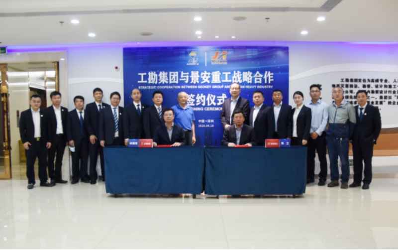 2020年4月18日上午,工勘集團(tuán)與徐州景安重工機(jī)械制造有限公司(以下簡(jiǎn)稱景安重工)戰(zhàn)略合作框架協(xié)議簽約儀式在工勘集團(tuán)總部舉行。景安重工董事長(zhǎng)陳衛(wèi)、總經(jīng)理魏垂勇、副總經(jīng)理李景峰,工勘集團(tuán)董事長(zhǎng)林強(qiáng)有,工勘巖土集團(tuán)副董事長(zhǎng)雷斌、總經(jīng)理李紅波、總工程師王賢能、副總經(jīng)理付文光、李新元等雙方領(lǐng)導(dǎo)及相關(guān)部門負(fù)責(zé)人出席了簽約儀式,深圳市土木建筑學(xué)會(huì)巖土工程專業(yè)委員會(huì)主任劉小敏等嘉賓受邀見證了簽約。